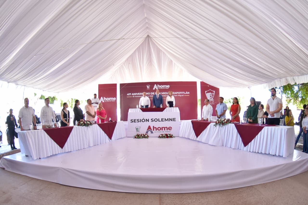 San Miguel Zapotitlán, Ahome, Sinaloa.- Para conmemorar los 417 años de fundación de San Miguel Zapotitlán y el 94 aniversario de la dotación de tierras del Ejido San Miguel, autoridades municipales celebraron Sesión Solemne de Cabildo en la Plazuela de dicha comunidad, donde se reconoció la labor de 5 distinguidos ciudadanos que trascienden por su trabajo en favor de sus vecinos, en diferentes ámbitos de la vida social.
