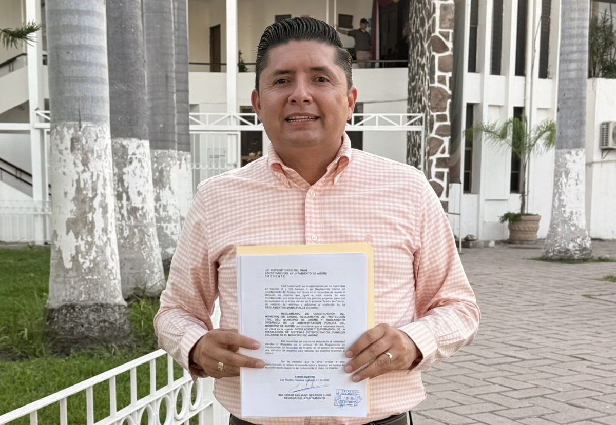 Para garantizar instalaciones seguras, ordenadas y con supervisión municipal en viviendas, comercios e industrias, el regidor del Ayuntamiento de Ahome, Ing. César Emiliano Gerardo Lugo, presentó ante la Secretaria Técnica del Ayuntamiento de Ahome una propuesta de reforma a tres reglamentos municipales, con el fin de regular y supervisar adecuadamente los sistemas fotovoltaicos (paneles solares).