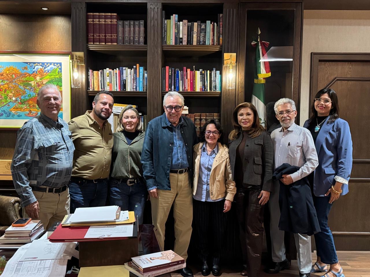 El mandatario estatal estuvo acompañado en este encuentro por la secretaria general de Gobierno, Yeraldine Bonilla Valverde; por la secretaria de Educación Pública y Cultura, Gloria Himelda Féliz Niebla; por el subsecretario de Educación Media Superior y Superior, Rodrigo López Zavala; por la diputada local Sthefany Rea Reátiga, presidenta de la Comisión de Cultura y Artes del Congreso del Estado; y por el director de la Ciudad Educadora y Sustentable del Saber, Gómer Monárrez González.